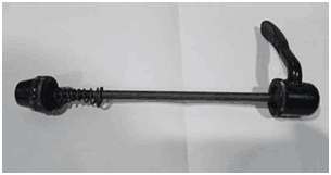 自行车在骑行过程中,在前轮快拆杆松脱或打开的情况下,前轮快拆杆扳手可能会触碰到碟刹总成,造成前轮骤停,存在人员摔伤风险。