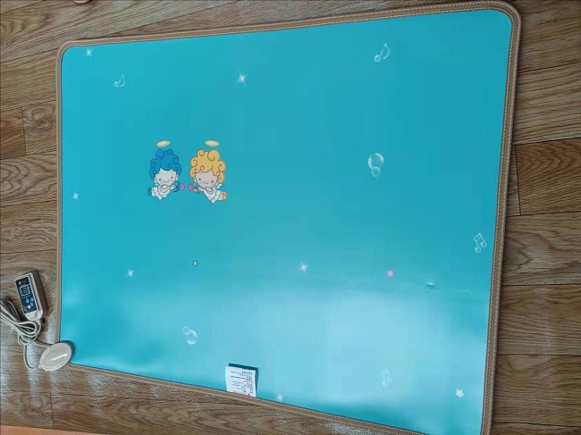 韩基电电热地毯碳晶地暖垫电热垫HJD100*80,表面材料PVC地板革,周边用织带进 行包边,使用的时候温控器跟垫子进行连接。