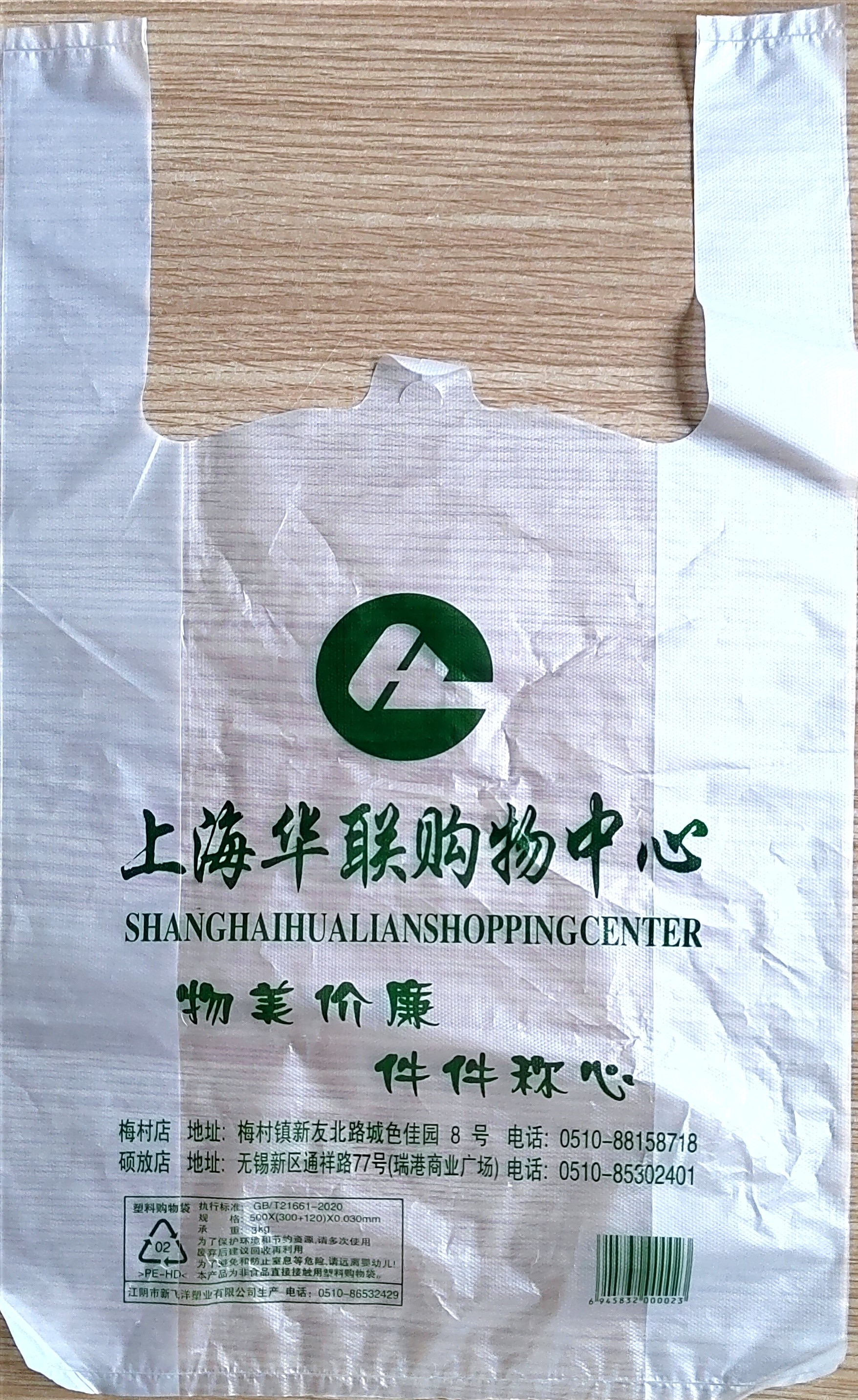 塑料购物袋颜色以透明为主,材质以聚乙烯为基础,主要功能是在 零售场所盛装及提携商品。 1.640*(450+180)*0.030mm
