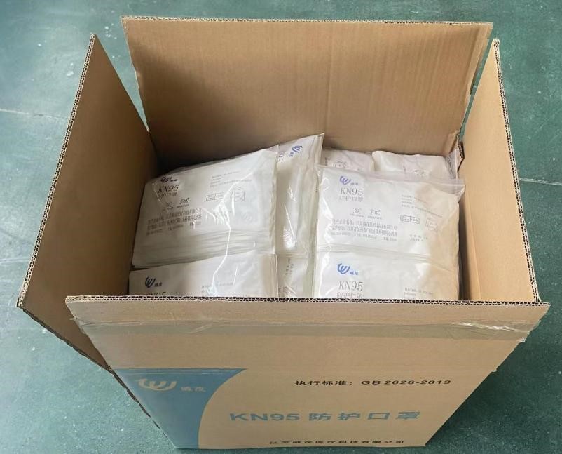 产品描述:KN95防护口罩,白色,折叠型,由口罩体、口罩带、鼻 夹组成。口罩体由纺粘无纺布、熔喷布、热风棉组成。 产品照片: