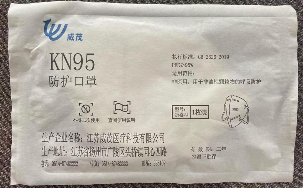 江苏威茂医疗科技有限公司召回(部分)威茂牌KN95防护口罩