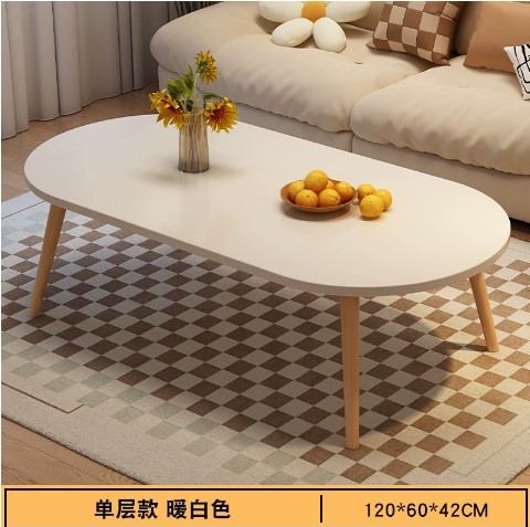 产品名称:茶几 颜色:暖白色 材质:密度板 规格型号:B-G12-B05-GY-单层椭圆款暖白色120cm