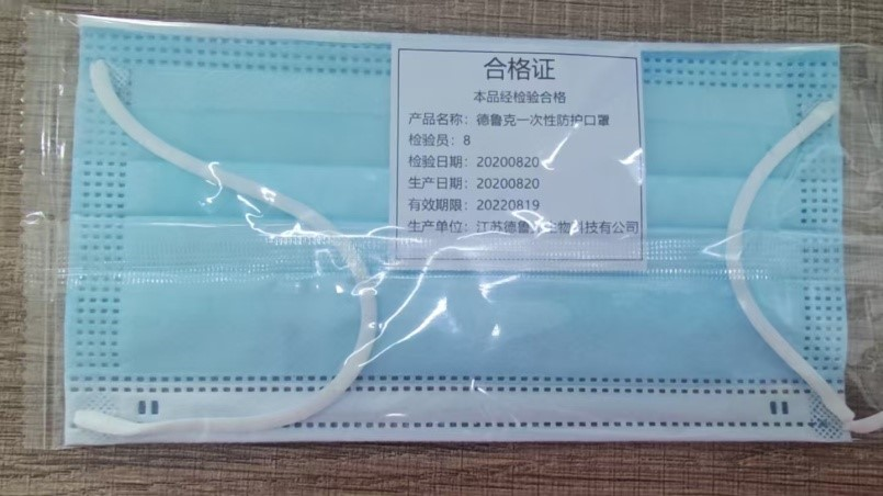 江苏德鲁克生物科技有限公司召回一次性防护口罩(非医用)产品