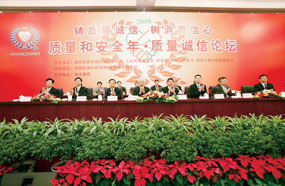 6月16日,由国家质检总局联合工业和信息化部、商务部、中国人民银行、国家工商总局共同主办的质量诚信论坛在北京开幕。这是“质量和安全年”的一项重要活动。本次论坛的主题为“铸质量诚信、树消费信心”。