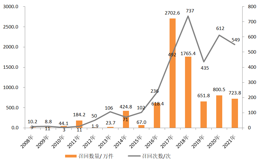 统计数据显示,截至2021年底,我国累计召回汽车9130万辆、消费品8027万件,累计引导企业技术改进5800余次,不断引导企业加大技术研发力度,加强产品安全测试,推动产业链质量升级。同时,加大重点案件行政约谈和缺陷调查力度,加强汽车远程升级(OTA)技术召回监管,探索电商平台消费品召回监督与安全共治,创新启动沙盒监管模式。2021年,市场监管总局联合生态环境部发布《机动车排放召回管理规定》,将召回从安全领域扩展到环保领域。