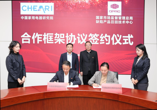 协同创新,赋能行业。11月3日下午,市场监管总局召回中心与中国家用电器研究院签署合作框架协议。双方将以推动我国电子电器产业高质量发展、提升我国电子电器产品全球市场竞争力为目标,聚焦行业发展难点痛点问题,顺应电子电器新技术迭代趋势,依托各自资源优势,在实验室能力、科技成果应用服务等关键领域开展合作。