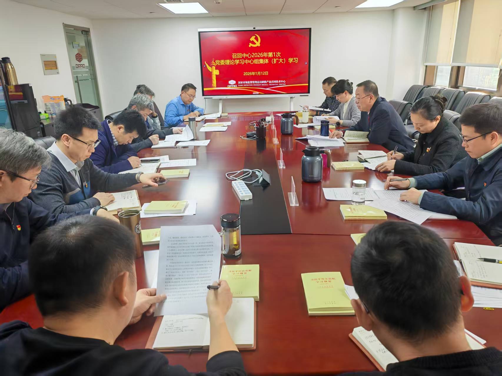2026年1月12日,召回中心党委理论学习中心组开展2026年第一次集体(扩大)学习,传达学习习近平总书记在中央政治局民主生活会和中央经济工作会上的重要讲话精神,持续深入学习习近平总书记关于党的建设的重要思想、关于党的自我革命的重要思想以及关于全面加强党的纪律建设、作风建设的重要论述等内容。中心组成员紧紧围绕中心工作实际,交流学习体会。召回中心主任、党委书记王海主持会议,各部门主要负责同志列席会议。