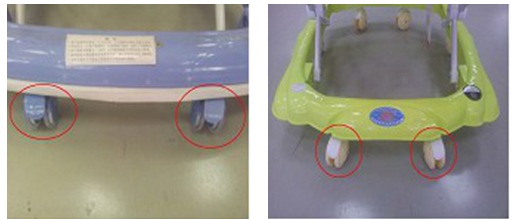 5.脚轮检查:检查学步车的脚轮安装后应在一个平面上,使用中均应灵活转动;可以选购带有辅助固定装置的学步车,在需要时能够防止学步车移动,方便照顾儿童,但应注意学步车的脚轮不应带有刹车装置,以防使用中出现意外。
